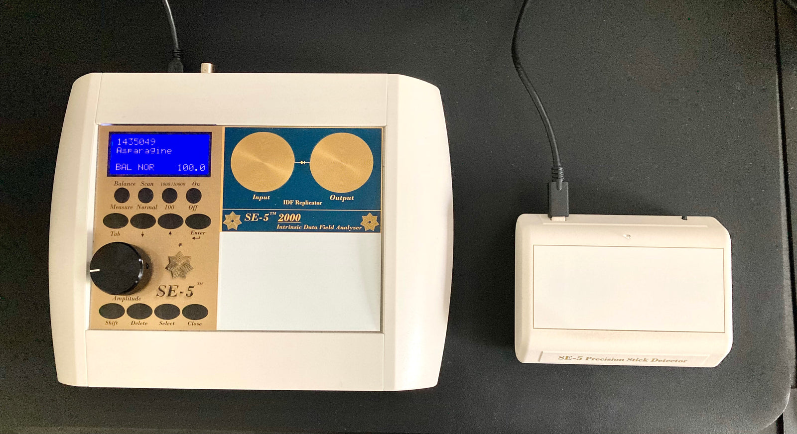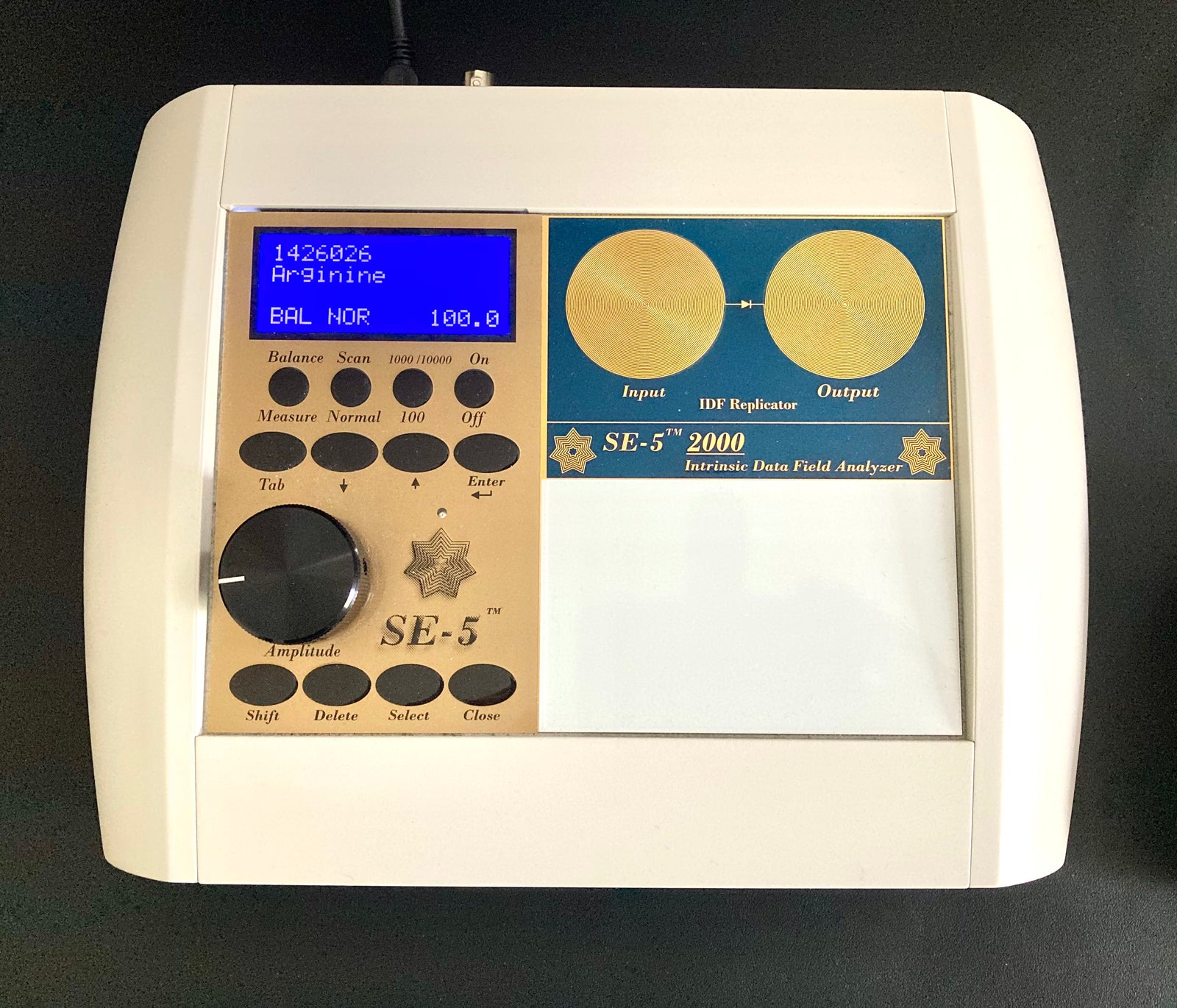 The SE-5 1000 INTRINSIC DATA FIELD ANALYZER, popularly known as the SE-5, is a solid state electronic instrument designed to detect, quantify, and transmit a full spectrum of IDF signals to restore normal wave form patterns or functions of the biofield.