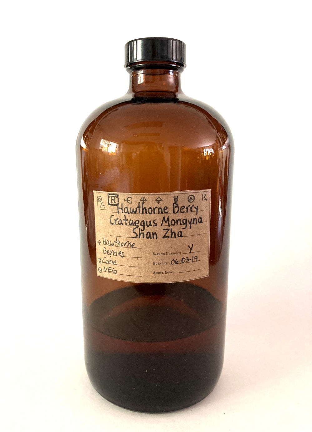 This Hawthorne Berry Spagyric Tincture is made from berries of the Hawthorne tree. Crataegus monogyna is also known as common hawthorn, May tree, one-seed hawthorn, whitethorn, or quickthorn. Our Spagyric Tinctures are made with Organic, Ecodynamic, or Wildharvested Biomass and Tinctured with Organic Cane Spirits as our Veg Mercury. Once the tincture is made, we add Spagyric Salt of Salt of the Vegetable Kingdom and digest until reactions have stopped.